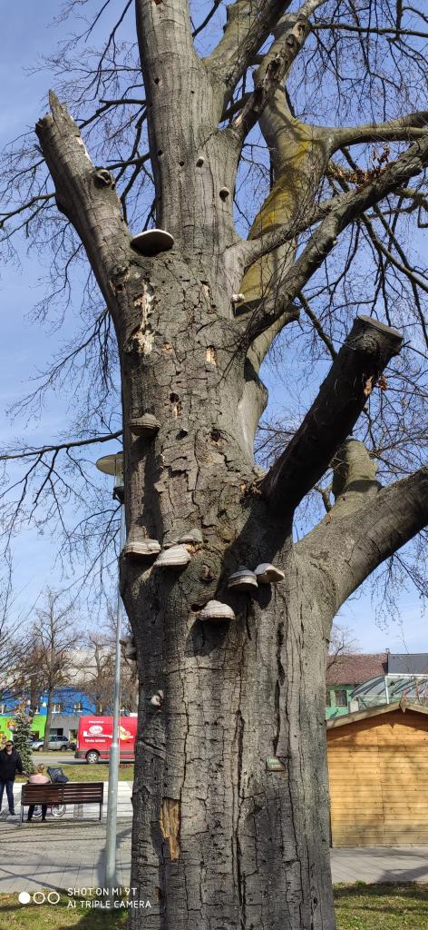 Již několik let máme možnost sledovat postupné zhoršování zdravotního stavu památného stromu na náměstí. Poté co se na kmeni stromu objevily plodnice dřevokazné houby troudnatce kopytovitého, byl objednán znalecký posudek, který provedl znalec v oboru ochrany přírody se specializací hodnocení stavu a návrhu technologie ošetření stromů, pan Ing. Jaroslav Kolařík, Ph.D. Byla provedena analýza kmene v oblasti pod kosterním větvením pomocí akustického tomografu, který ukázal na masivní rozsah interního defektu s nutnou realizací stabilizačního zásahu.