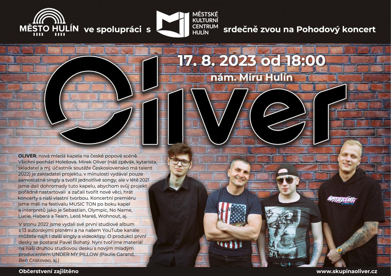 Vystoupí skupina Oliver - nová mladá kapela, jejíž členové pochází všichni z Holešova. Hrají vlastní hudební tvorbu.